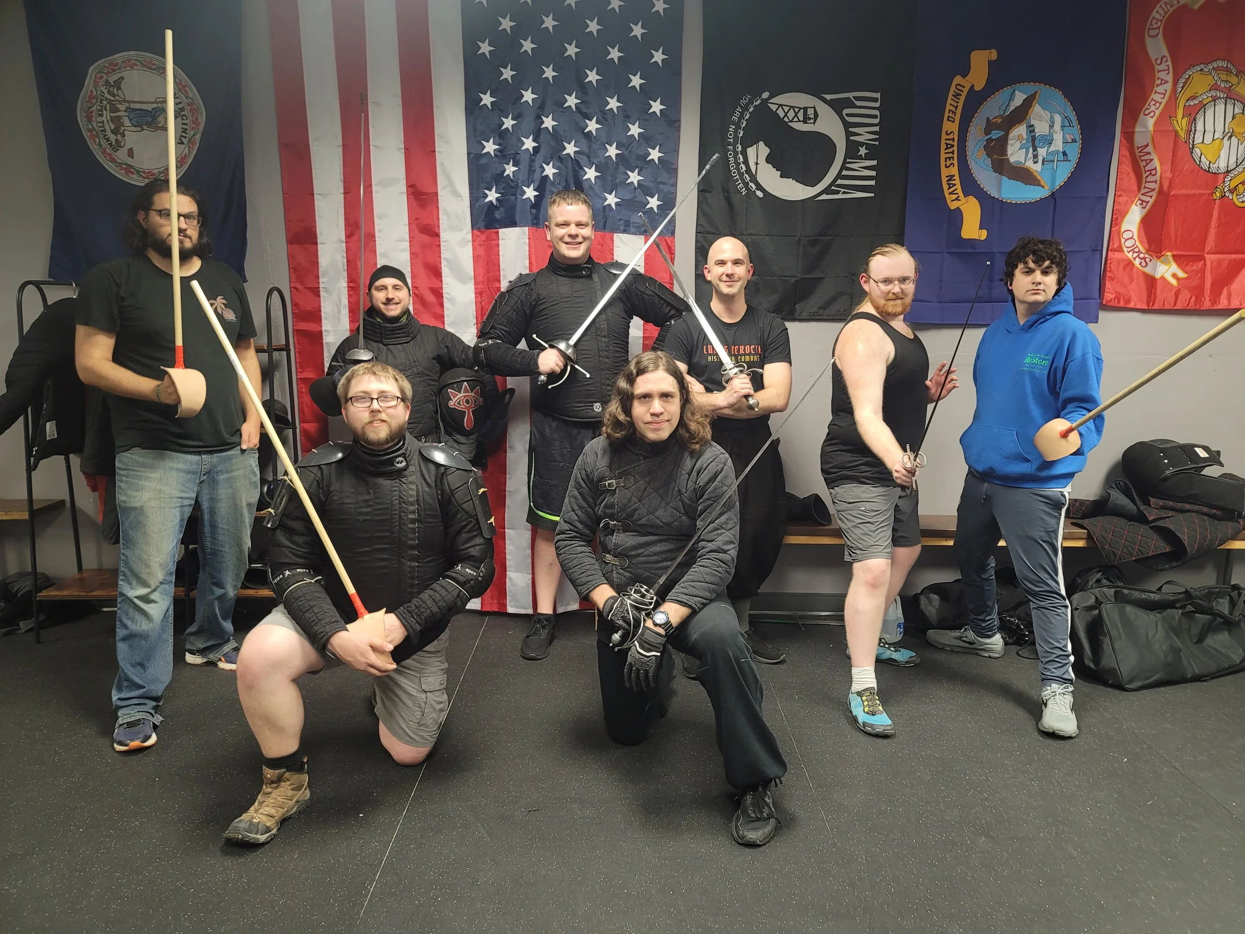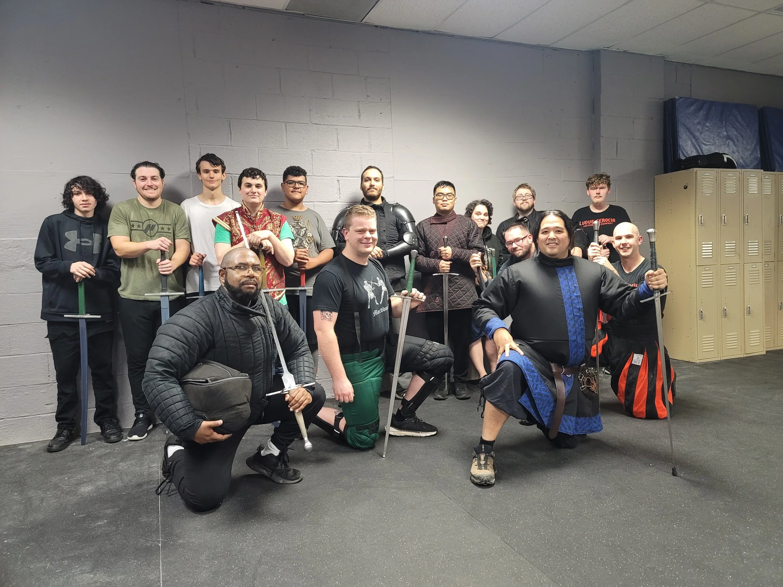 NONE! We have practice weapons and gear you can use to try out a class. If you would like to know more about buying your own training swords and protective equipment, visit our GEAR GUIDE PAGE